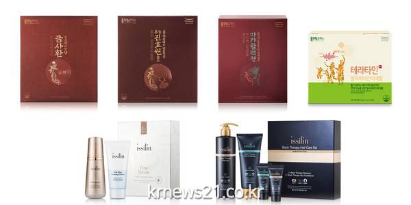 ‘금사환’은 농축 홍삼 성분에 검증된 전통 원료를 과학적으로 배합한 둥근 ‘환’ 형태의 프리미엄 홍삼 제품이다. 홍삼 이외에 산삼배양근, 바다제비집, 녹용, 정향 등 진귀한 전통 원료를 부원료로 사용했다. 부드럽고 은은한 향이 선물하는 이의 마음과 품격까지 전해준다. ‘홍삼 진효원 골드’는 홍삼에 스트레스로 인한 피로 개선에 도움을 줄 수 있는 홍경천 추출물이 더해진 제품이다. ‘마카활력청’은 풀무원 로하스건강생활연구소가 개발한 마카엑스복합물에 홍삼농축액과 홍삼칩, 마누카허니복합물을 넣어 영양뿐 아니라 씹는 즐거움을 더한 제품이다. 스틱 포장으로 되어 있어 언제 어디서나 간편하게 섭취할 수 있다.