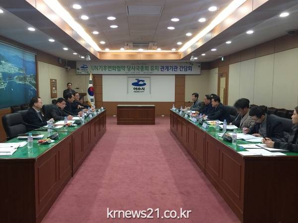여수시(시장 권오봉)는 지난 24일 오후 시청 상황실에서 UN기후변화협약 당사국총회 유치를 위한 관계기관 간담회를 열었다.