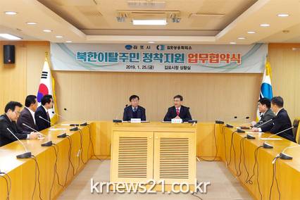 김포시와 김포상공회의소는 북한이탈주민이 김포시에 새로운 생활의 터전을 마련하고 보다 나은 삶의 희망을 주기 위해 이번 협약을 맺었다.