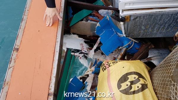 약 70cm x 100cm가량의 파공이 생겼으나 침수 피해와 해양오염은 발생치 않았다.