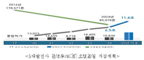 5대 발전사의 환경투자계획에는 황산화물, 질소산화물 등 미세먼지 유발물질 저감을 위한 방지시설의 추가설치, 고효율 처리시설로 교체, 청정연료로 전환, 저탄시설 옥내화 등*이 포함되며, 일부 2025년 이후 계획을 포함하면 총 11조 4천억 원이 투자될 예정이다.