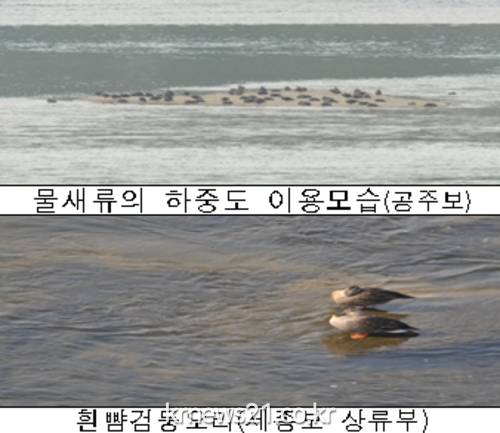 또한, 보 개방 시에는 모래톱 등 생태공간이 확대되면서 다양한 물새류와 표범장지뱀, 맹꽁이, 삵, 수달과 같은 멸종위기 야생생물의 서식환경이 개선된 것으로 나타났다.