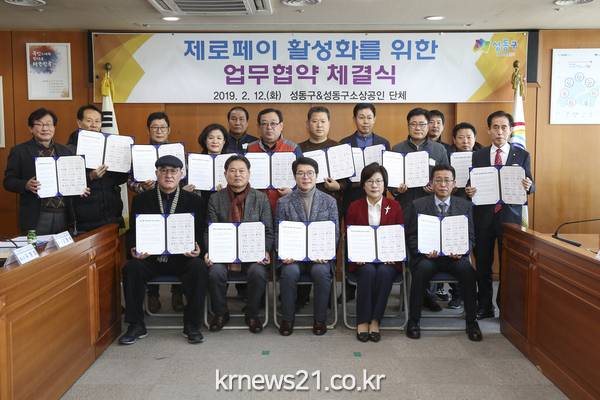 성동구(구청장 정원오)는 지난 2월 12일 소상공인 관련 16개 단체와 제로페이 활성화를 위한 업무협약을 체결했다고 밝혔다.