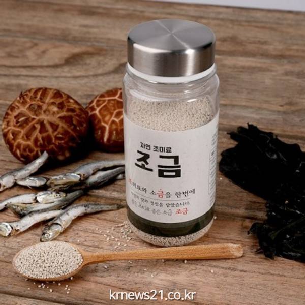 자연조미료 조금은 조미료와 소금을 하나로 합친 특별한 제품이다. 8가지 자연재료(죽염, 함초, 미나리, 멸치, 양파, 다시마, 미역, 표고버섯)로 만들어진 조금은 인공합성료 및 화학첨가물이 첨가되지 않았고 소금 대신 죽염을 사용해 나트륨 걱정을 덜어주는 건강을 위한 제품이다. 그뿐만 아니라 8가지 재료의 깊은 맛을 통해 조금 하나만 넣어도 간편한 요리를 할 수 있도록 돕는 것이 특징이다.