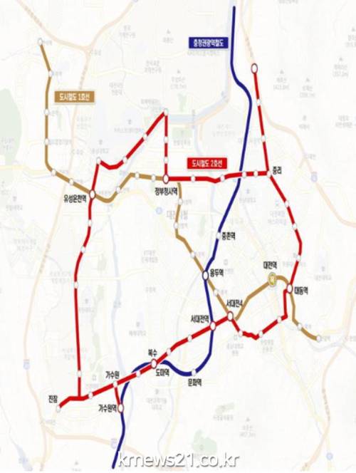 지난 1월 29일 예타 면제사업으로 확정된 도시철도 2호선 트램이 건설되면 대전에는 간선 철도망 3개 노선이 구축된다.