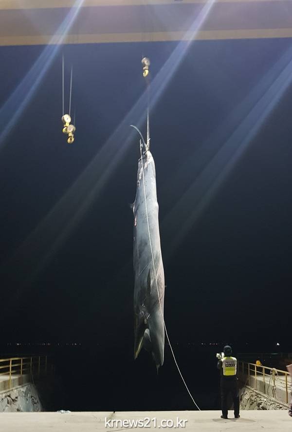 해경 관계자는 “고의 포획 흔적은 없으나 보호대상 고래류로 분류돼 유통ㆍ판매가 금지되어