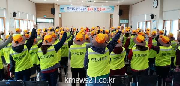 여수시는 지난 4일 오전 보건소 회의실에서 2019년 상반기 등하굣길 안전지킴이 발대식과 안전교육을 열고 성실 근무를 다짐했다.