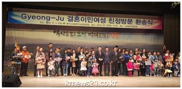 경주시는 지난9일 서라벌문화회관에서 올해 결혼이민여성 친정방문대상자로 선정된 20세대를 초청해 (사)경주시국제친선교류협의회 주관으로 ‘2019년 경주시 결혼이민여성 친정방문 환송식’을 가졌다.