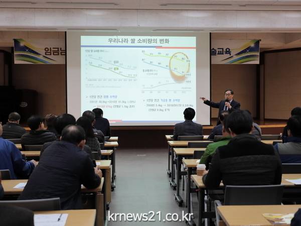 이번 교육은 대한민국 대표 쌀 브랜드인 임금님표 이천쌀을 이천지역에 알맞은 품종으로 대체하기 위해 개발된 해들과 알찬미의 고품질 생산을 돕기 위해 국립식량과학원 정응기연구관이 강사로 초빙되어 실시되었다.