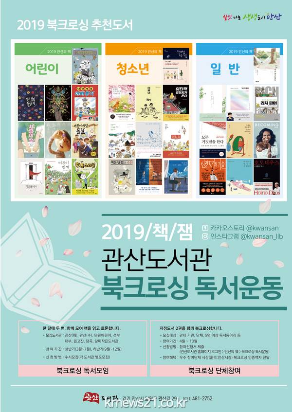안산시(시장 윤화섭) 관산도서관은 함께 읽는 책읽기 ‘북크로싱 독서운동’에 참여할 학교와 시민을 모집한다고 18일 밝혔다.