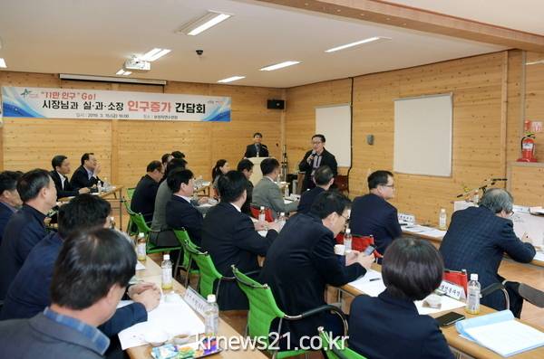 영천시(시장 최기문)는 지난 15일 보현자연수련원에서 최기문 시장 주재로 전체 실, 과, 소장이 참석한 가운데 ‘인구증가 간담회’를 개최했다.