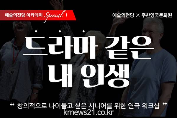 브라보, 마이 라이프!(Bravo, My Life!) 삶을 즐기는 시니어를 위한 인생 2막이 펼쳐진다. 예술의전당(사장 고학찬)은 주한영국문화원과 공동으로 시니어를 위한 연극 워크숍 ‘드라마 같은 내 인생’을 3월 27일(수) 오전 10시부터 오후 5시까지 예술의전당 연극연습실에서 개최한다.