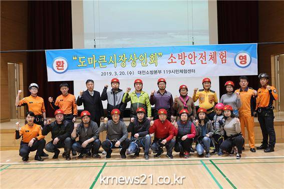 ▲ (사진=대전시청 제공)대전시 소방본부는 20일 오후 119시민체험센터(서구 복수동)에서 도마큰시장 상인회 소속 상인 및 그 가족 30여명을 대상으로 맞춤형 소방안전체험 프로그램을 진행했다.