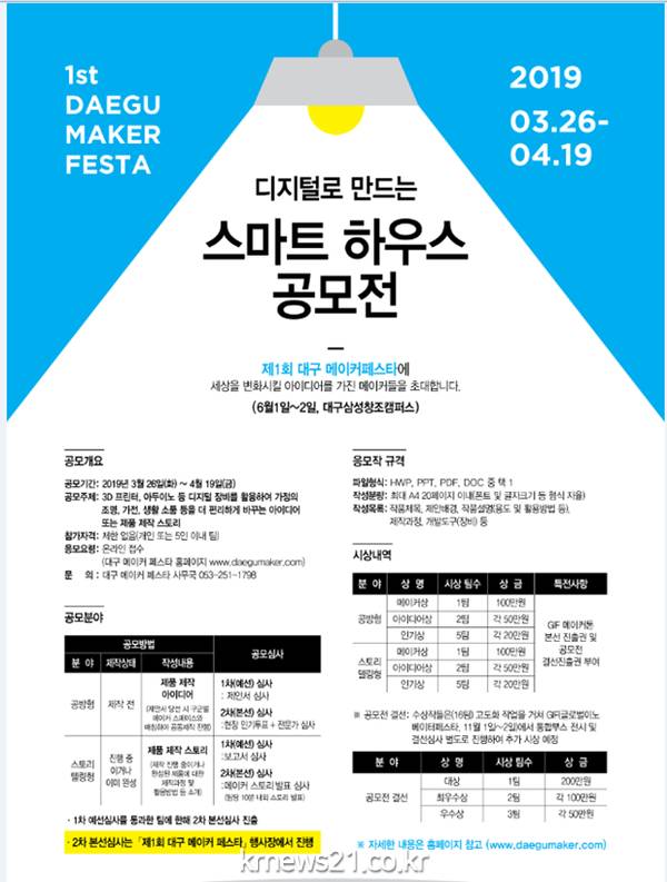 이번 공모전은 ‘디지털로 만드는 스마트 하우스’라는 주제로 디지털 장비를 활용하여 가정의 생활용품이나 설비 등을 편리하게 개선하는 아이디어 또는 제품 제작 스토리를 발표하는 것으로 메이커 활동에 관심 있는 개인 또는 팀 단위(5인이내)로 학생과 일반시민 등 누구나 신청할 수 있다.