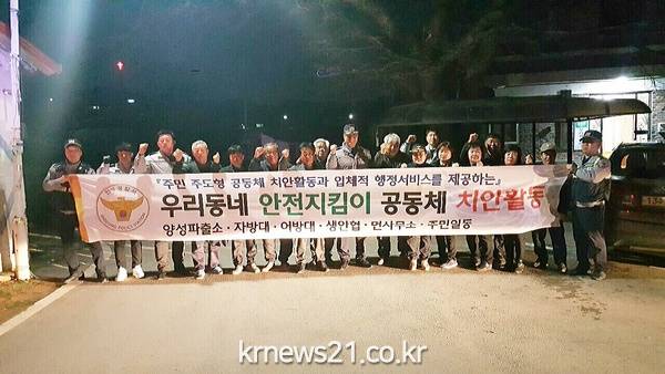 중학교 학창시절에 어렵게만 느껴지던 ‘교집합’이라는 수학공식이 있었다. 두 집합 A, B에 대하여 A에도 속하고 B에도 속하는 공통된 부분을 말한다.경찰과 시민의 관계 역시 공통된 부분은 “안전”이다. 즉 시민들이 각종 사건ㆍ사고 걱정 없이 안전하게 살 수 있는 권리와 경찰은 그런 환경을 만들어 줄 책임과 의무가 있다.안성경찰서(서장 윤치원)에서는 안심화장실사업을 펼치는 등 물리적 환경개선을 통해 범죄를 예방하는 CPTED(범죄예방환경설계) 치안활동을 다양하게 펼치고 있다.이에 안성경찰서 양성파출소는 경찰이 주도하는 치안활동만으로는 지역사회의 안전망을 구축하기에는 미흡한 부분이 있어 ‘우리동네는 우리가 지킨다’는 슬로건 아래 지역주민이 주도하고 참여하는 <</span>우리동네 안전지킴이 공동체 치안활동>을 벌여 주민차치 방범의식을 일깨우고 있다.지역사회 오피니언 리더인 이장(부녀회장)을 포함한 마을주민들과 면사무소, 경찰협력단체(생활안전협의회ㆍ자율방범대ㆍ어머니자율방범대)는 매주 목요일 저녁 함께하는 이웃동네 순찰활동 및 입체적 행정서비스를 통해 그동안 소원하게 지내 생겼던 오해와 편견을 불식하고 서로에 대한 끈끈한 믿음과 신뢰를 회복하는 화합의 장으로 거듭나고 있다.양성면 방축2리 부녀회장은 “전에는 경찰만 보면 죄진 거 없이 무서웠는데, 이렇게 주민들과 함께 마을 순찰을 돌아주니 이제는 안심이 된다.”면서 안전하고 살기 좋은 양성을 만들기 위해 작은 힘이나마 보탤 수 있게 되어 “너무 고맙다”고 말했다.양성파출소장(소장 김성대)은 지역공동체 의식을 높이고 안전하고 살기 좋은 양성을 만들기 위해 주민들과 소통하고 함께 하는 다양한 치안활동을 계속해서 이어 가겠다고 한다.
