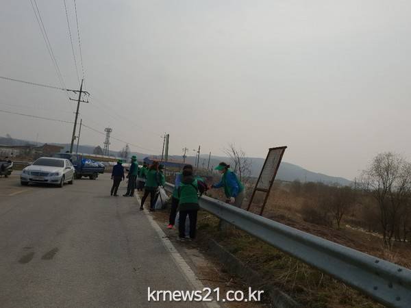 이번 대청소는 관내 복하천변에 방치된 생활 쓰레기와 폐기물을 수거하는데 새마을 지도자와 부녀회장 50여명이 힘을 모아 봉사활동에 참여했다.