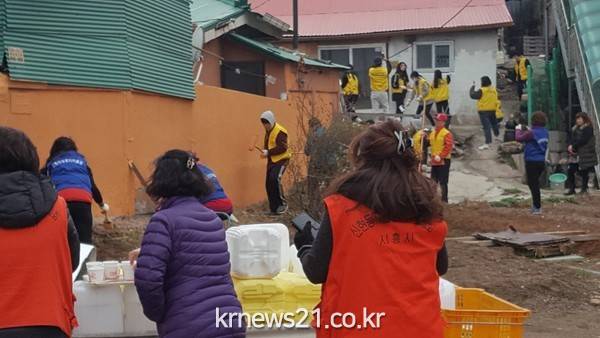 시흥시 관내 봉사단체들은 신현동 소재 저소득 가정 중 오래되고 허름한 집을 찾아 매년 페인트 봉사활동을 실시한다. 이번에는 미산동 소재 저소득 가구 두 집을 찾아 외벽의 금이 간 곳을 보수하고 페인트 도색봉사를 실시했다.