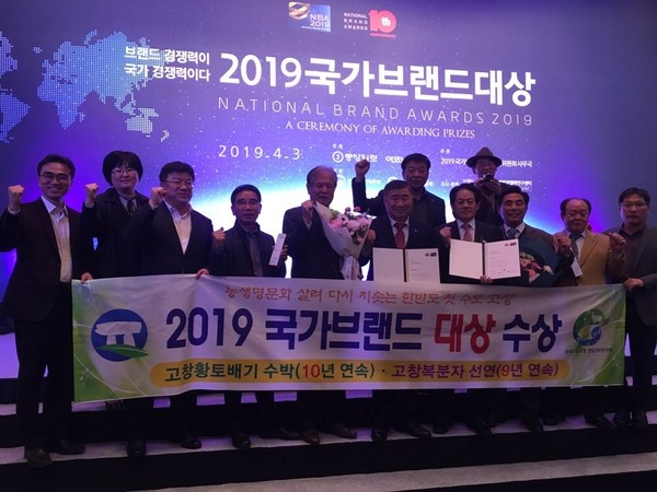 3일 고창군에 따르면 이날 오전 서울 소공동 롯데호텔에서 열린 중앙일보 주최 ‘2019국가브랜드 대상(농림축산식품부, 산업통상자원부 후원)’ 시상식에서 수박과 복분자 부문 대상으로 선정됐다.