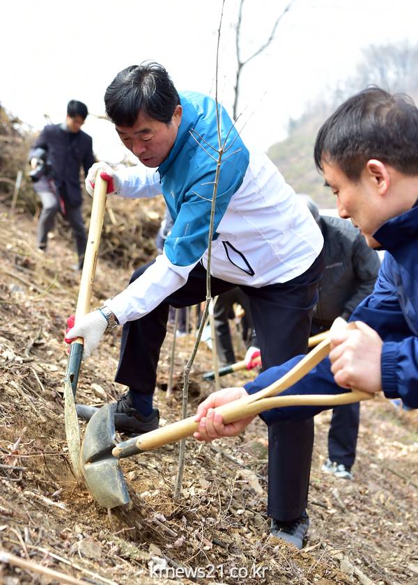 이날 나무심기행사는 수목 식재 방법 설명을 들은 후 참석자 전원이 수목을 식재하고 지주목을 설치하는 순으로 진행됐다.