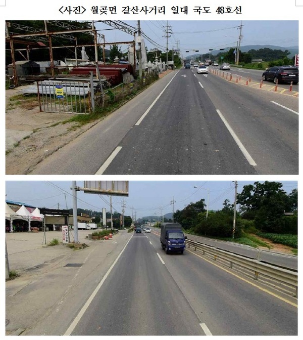 서울지방국토관리청은 국회 국토교통위원회 소속 홍철호 의원에게 “4억 4400만원의 예산을 투입해 월곶면 갈산사거리 일대의 국도 48호선 측면에 길이 440m(폭 2m)의 보도와 가로등을 설치하겠다”고 보고했다.