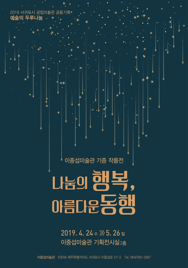 서귀포시 관계자는 “이번 <나눔의 행복, 아름다운 동행> 전시를 통해 미술관 기증의 의미와 역할, 그 중요성에 대해 되새겨보는 기회가 되기를 바라며 기증자에게 다시 한 번 감사의 마음을 전한다.”고 밝혔다.
