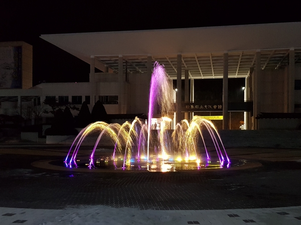 진도군은 지난해 4월부터 예산 9억여원을 투입, 진도의 다양한 문화예술자원을 활용해 관광객 유치와 지역경제 활성화를 위해 서·화·창 풍경길 만들기 조성사업 일원으로 향토문화회관에 음악분수와 미디어파사드를 제작·설치했다.