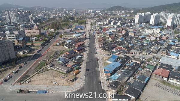 ▲ [사진=총 사업비 180억원을 들여 교룡대로 사업을 추진한다]남원시 동서축을 연결하는 교룡대로 개설사업이 순조롭게 진행되고 있다. 남원시는 총 사업비 180억원을 들여 한국국토정보 공사~신협~시청로 3가 구간 1.5km를 폭 25~35m로 개설하는 교룡대로 사업을 추진하고 있다. 교룡대로는 4월 22일 현재 공정률 55%로 2020년 예정대로 완공할 예정이다.