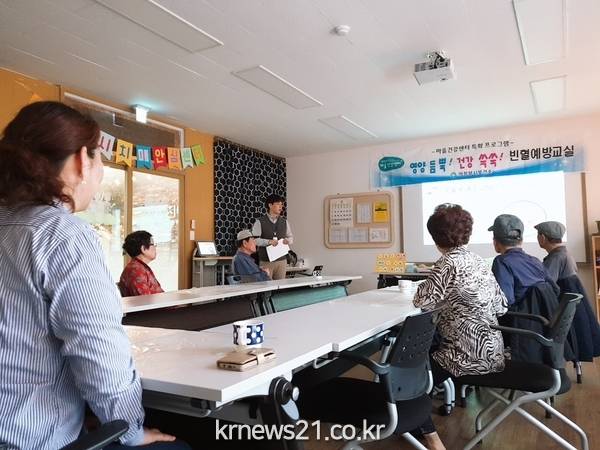 ▲ [사진=‘영양듬뿍! 건강쑥쑥!’ 어르신 빈혈예방 교실]의정부시보건소가 운영하는 신곡권역 마을건강센터는 4월 23일 어르신들을 대상으로 하는 ‘영양듬뿍! 건강쑥쑥’ 빈혈예방 2회 차 수업을 실시했다.