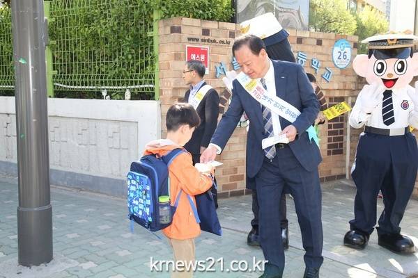 유동균 마포구청장은 2일 오전 마포구 성산2동 신북초등학교 정문에서 등굣길 어린이 교통사고 예방을 위해 열린 '초등학교 교통안전 캠페인'에 참여했다. 유 구청장은 아이들에게 안전 홍보용품을 배부하며 적극적인 캠페인 활동을 펼쳤다.