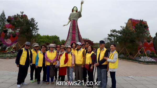 ▲ [사진=구4 고양시 장항2동, ‘어르신 꽃박람회 봄나들이 가요’]고양시 장항2동 지역사회보장협의체는 4월 29일 지역 독거어르신 10여 명을 모시고 호수공원 꽃박람회 나들이 지원 행사를 가졌다.