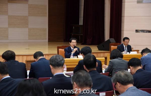 이날 회의는 시장의 모두발언을 시작으로 주요 현안사항에 대한 보고와 토론, 부서별 협조사항 공유 등의 내용으로 진행됐다.