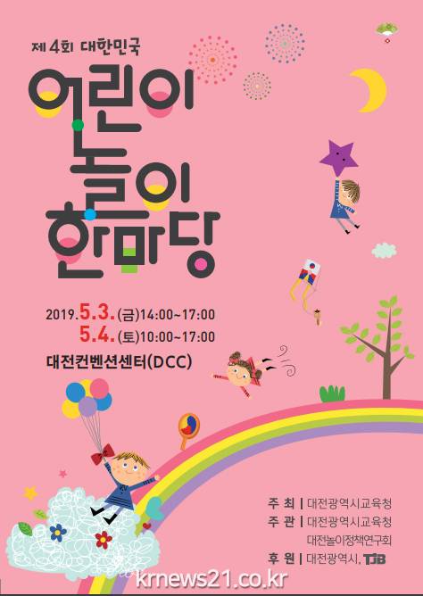 대전광역시교육청(교육감 설동호)은 오는 5월 3일(금)부터 4일(토)까지 대전컨벤션센터(DCC)에서 제4회 대한민국 어린이 놀이 한마당을 개최한다고 밝혔다.