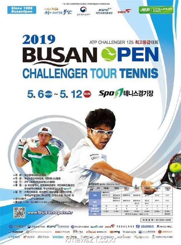 ▲ [사진= 홍보포스터]부산시(오거돈 시장)는 5월 6일부터 12일까지 7일간의 일정으로 금정체육공원 테니스경기장에서 ‘2019 부산오픈국제남자챌린저테니스대회(이하 부산오픈)’가 펼쳐진다고 밝혔다.
