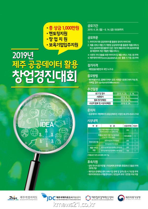 ▲ [사진=공공데이터 활용 대회]제주특별자치도는 지난 4월 29일부터 오는 6월 14일까지 ‘2019년 제주 공공데이터 활용 창업경진대회’를 진행하고 있다고 6일 밝혔다.