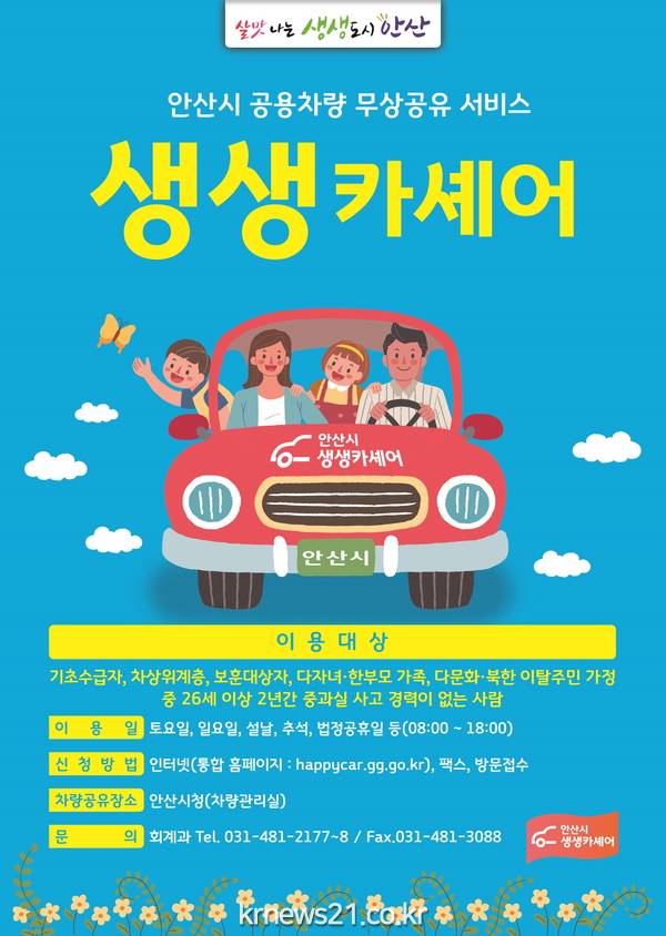 안산시(시장 윤화섭)는 차량이 필요한 시민들을 대상으로 공용차량을 무상으로 공유한다고 7일 밝혔다.