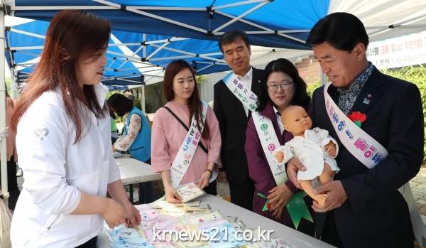 구는 저출산을 극복하고 임신·출산의 소중함을 알리기 위해 ‘아이 좋아, 둘이 좋아’ 홍보부스를 운영해 신생아 돌보기, 기저귀 갈기, 아이 안아 주기 등 간접적으로 육아를 체험할 수 있는 다채로운 프로그램을 운영했다.