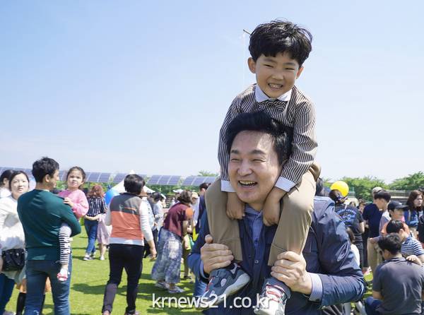원희룡 지사는 기념식 하이라이트인 어린이날 축하 박 터트리기 행사와 기념사진 촬영, 목마 태우기 등 어린이들과 함께 시간을 가졌다.