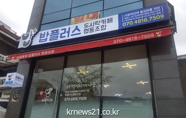 경기도 옥외광고협회 성남시지부의 후원으로 첫 간판을 단 밥 플러스 협동조합은 취약계층 여성들의 일자리를 만들어 자립할 수 있도록 돕는 여성 가족형 예비사회적기업이다. 2017년 12월 여성가족부가 지정했다.