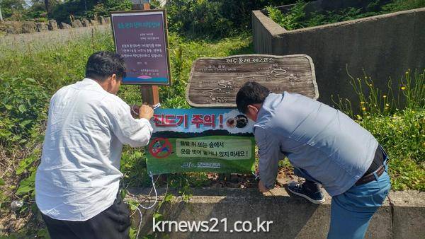 동부보건소는 지역주민 대상 진드기 매개 감염병 교육 및 홍보를 지속 실시하고 5월부터 관내 올레길, 오름 등 주요 서식지 22개소에 대해 진드기 분포를 조사하여 진드기가 많이 조사된 장소를 중심으로 살충소독 실시 및 올레길, 오름, 공원 출입구를 중심으로 예방수칙 안내문을 게시하여 방문객들에게 주의사항을 홍보할 계획이다.