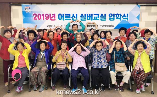 ▲ [사진=실버교실 입학식]울산 중구 약사동 행정복지센터와 주민자치위원회(위원장 김광재)는 9일 오후 2시 약사동 어르신들과 래미안2차부녀회 자원봉사자 등 30여명이 참석한 가운데 '2019년도 어르신 실버교실' 입학식을 개최했다.