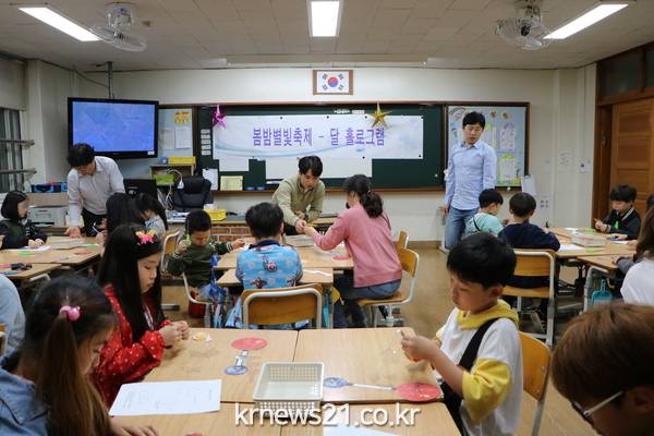 5월 13일 18시 30분부터 시작된 이번 축제는 학부모와 학생들이 함께 참여하여 야광 별자리 판 만들기, 별자리 버튼 만들기 등의 조작 활동, 천문 동영상 시청, 천체 가상체험, 밤하늘 천체 관측 활동 등 체험 활동 위주의 프로그램으로 구성되어 학생들이 우주의 신비로움을 느끼며 미래의 꿈을 향해 도전의식을 키우는 우주 과학축제의 장이 될 것이다.