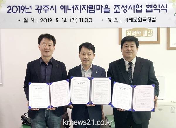 광주시는 지난 14일 이재두 경제문화국장 및 초월읍 학동리 마을 대표자, 참여기업(케이디솔라) 등 관계자가 참석한 가운데 ‘2019년 에너지자립 마을 조성사업’ 협약식을 진행했다고 밝혔다.