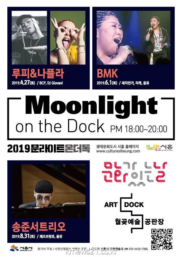 시흥시(시장 임병택)와 문화체육관광부는 ‘문화가 있는 날’ 사업을 통해 기획공연 ‘2019년 Moonlight on the Dock’ 두 번째 공연을 월곶 예술공판장 Art Dock(이하 아트독)에서 개최한다.