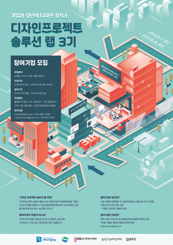 경기도와 경기콘텐츠진흥원(이사장 김경표)이 「2019 디자인프로젝트 솔루션 랩」 참가 기업을 오는 30일까지 모집한다.