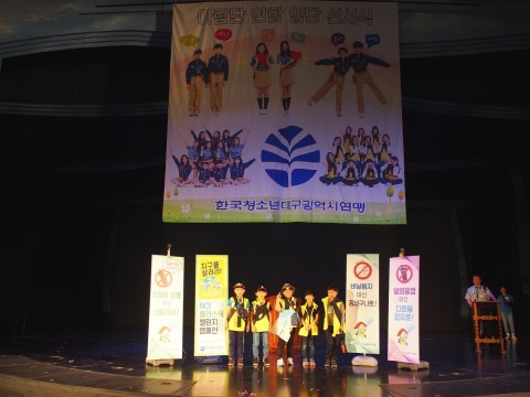 ▲ [사진=연합입단선서식 및 노 플라스틱 챌린지 캠페인]한국청소년대구연맹은 5월 4일, 11일, 18일, 25일, 6월 1일, 15일, 22일 총 7회에 걸쳐 용인 에버랜드에서 6000여명의 초등학생(아람단), 800여명의 중·고등학생(누리·한별단), 360여명의 대학생자원봉사자(한울회)가 참가하여 ‘2019년 연합입단선서식’ 및 ‘노 플라스틱 챌린지’ 캠페인을 실시한다.