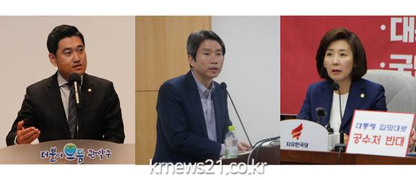 ▲ [사진=좌 오신환 원내대표, 중 이인영 원내대표, 우 나경원 원내대표]더불어민주당 이인영, 자유한국당 나경원, 바른미래당 오승환 원내대표가 오늘(20일) 오후 8시 국회 정상화를 위한 논의를 하기 위해 여의도 한 카페에서 호프 타임 형식의 회동을 진행한다.