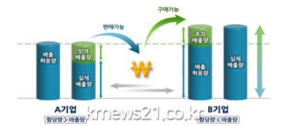 ▲ [사진=배출권 거래제 구조]환경부(장관 조명래)는 '제2차 계획기간(2018~2020) 국가 배출권 할당계획 변경(안)'에 대한 각계의 의견을 듣기 위해 5월 21일 오전 10시부터 서울 서초구 엘타워 5층 매리골드홀에서 공청회를 연다.