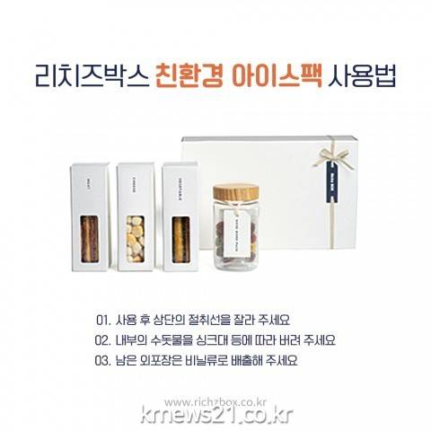 이에 리치즈박스(기업명 리치즈)는 펫푸드 업계 최초로 고객의 편의와 환경문제 등을 고려해 배송 시 사용되는 아이스팩을 친환경 제품으로 전면 교체했다고 21일 밝혔다.
