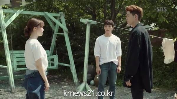 ▲ [사진제공 = ‘절대그이’ 방송 캡처]SBS 수목드라마 ‘절대그이’ 여진구-방민아-홍종현이 한가로운 대낮의 빨랫줄 앞을 아수라장으로 만든, ‘빨랫감 체포 삼자대면’을 펼치며 ‘멘붕 삼각관계’에 돌입했다.