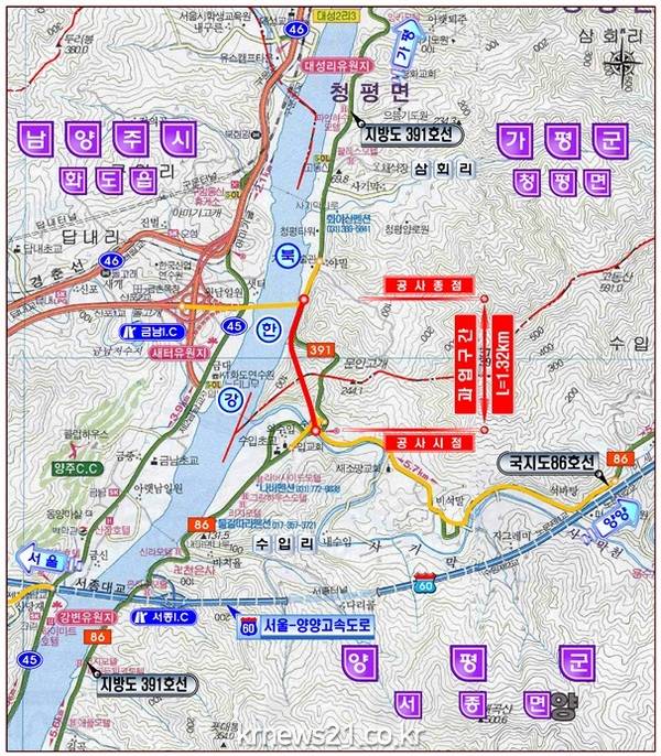 경기도는 2006년부터 선형개선 사업을 추진해 2010년 설계를 완료했지만, 정부가 추진하는 국지도 86호선 와부~설악 계획노선과 중복돼 착수가 지연됐다.